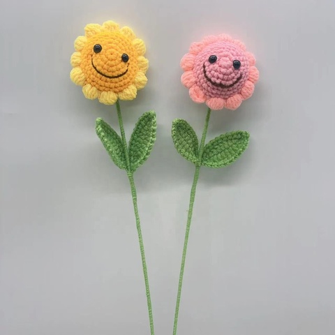 Oem Odm ألعاب الكروشيه المخصصة محاكاة وجه مبتسم عباد الشمس اليدوية المنسوجة الزهور الصوف باقة الكروشيه للزينة هدية