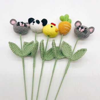 Conejito de ganchillo hecho a mano, mini juguetes tejidos para bebés, oso de peluche, cabeza de Animal relleno, flores de ganchillo